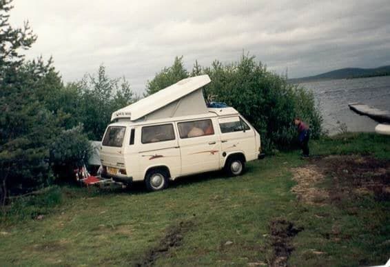 In het najaar van 1992 kochten we onze eerste “eigen” camper bij Mabo Campers in Hengelo. Dit bedrijf – inmiddels opgeheven – was eigenlijk meer gespecialiseerd in het bouwen van grotere campers en had eens “op proef” een VW T3 uit de eerste helft van 1982 (nog nèt luchtgekoeld) omgebouwd tot 2-persoonscamper. Om hem 4 persoons te maken en om stahoogte te creëren moest er nog een slaaphefdak op. Dat lieten we doen bij Fabels in Almelo. We hebben in totaal 8 jaar rondgereden in deze camper. De naam behoeft enige toelichting: “Duva” is het Zweedse woord voor Duif (of in ons geval: Duijf) en Kampa is het Zweedse woord voor kampement, verblijfsplaats. Tel deze twee bij elkaar op en je krijgt Duva Kampa. Deze camper kwam net als die van Bob de Boer uit 1982, maar de luchtkoeling scheelde wel het nodige in vermogen en trekkracht. Het rééd, dàt wel. Wel hebben we onderhoudstechnisch de nodige tegenslagen gehad. In onze eerste Scandinavische vakantie met onze eigen camper hingen we in Zuid-Noorwegen al achter de sleepwagen, maar daarna zijn we in die vakantie wèl mooi doorgetuft tot Narvik en vandaar uit “rechtsaf” naar de Zweedse Oostkust. Ook hebben we in één zomervakantie een “Zuidreis” gemaakt waarin we al onze oude wintersportplaatsen aandeden. De reis voerde door Frankrijk, Italië, Oostenrijk, Tsjechië en Duitsland. Na dit zuidelijke “uitstapje” gingen we het volgende jaar weer als vanouds (al sinds 1986) “Noordwaarts”. In 1996 hebben we zelfs met een olie-zuipende motor de Noordkaap gehaald (èn weer terug). Inmiddels hadden we een dakraam, een katalysator-kachel en een 220 V / 12-V-omvormer ingebouwd. Omdat de ” dakisolatie” alleen uit vloerbedekking bestond, hadden we met z’n vieren in de wat koudere nachten wèl eens condensproblemen, maar dat mocht de pret niet drukken. Na acht jaar, aardig wat reparaties (waaronder enkele zéér kostbare), maar ook na héél veel onvergetelijke momenten en een hoop plezier – de camper was inmiddels 18 jaar oud geworden – hebben we hem met enige weemoed en via bemiddeling van Vuist in Oosterwolde (Fr.) verkocht. Bij deze zaak kochten we trouwens ook onze volgende camper: Duva Kampa 2.